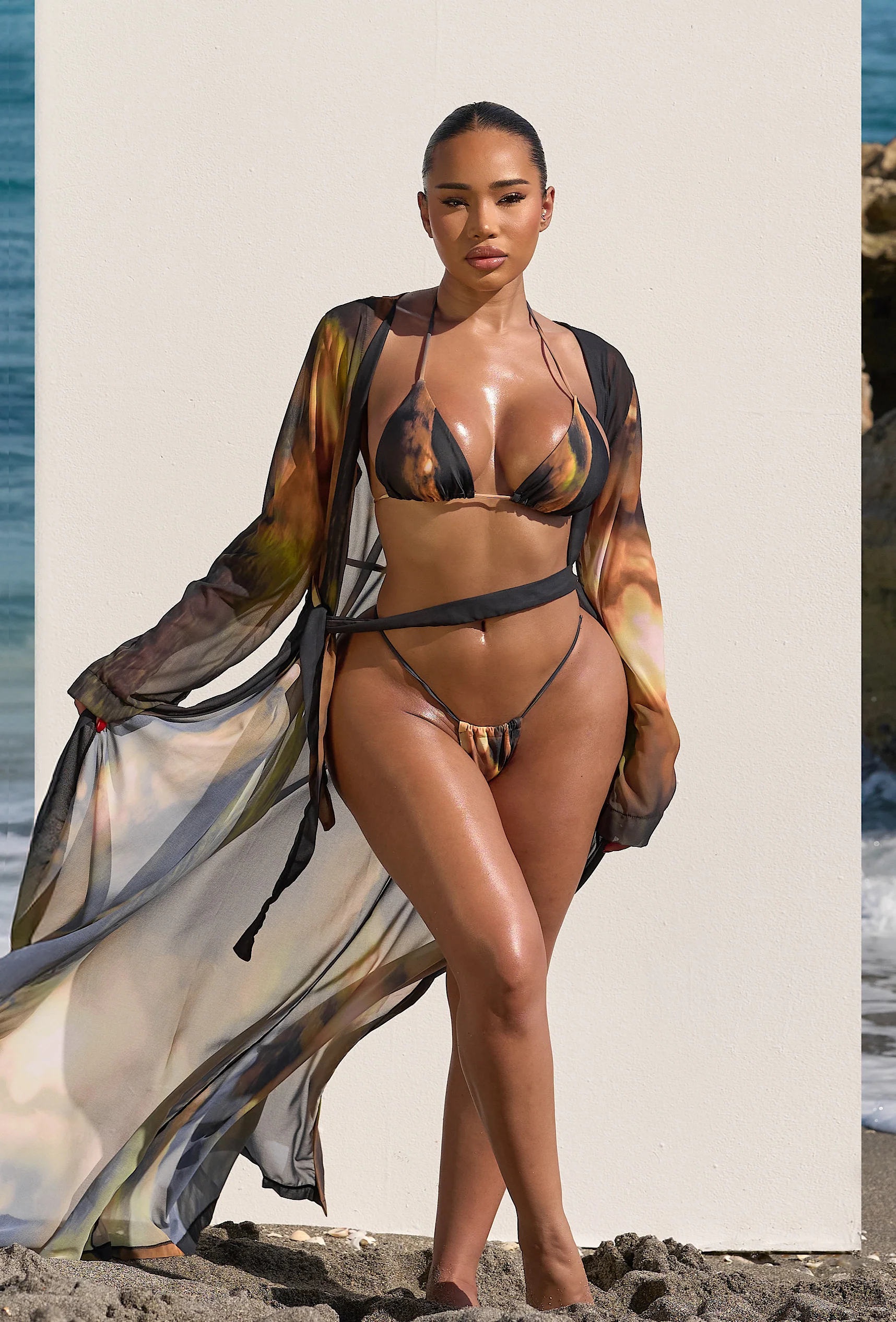 Drift through sun-soaked days in this dreamy sheer chiffon cover-up from the Solara Romance collection. Lightweight and flowing, it layers effortlessly over swimwear for a breezy, carefree vibe. The delicate fabric catches the light beautifully, creating an ethereal silhouette perfect for beach strolls, poolside moments, or casual getaways. Embrace your whimsical side with a piece that feels as good as it looks.